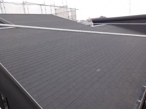 シングル葺き釘打ち併用工法にて雨漏り修理完了です。アスファルトシングル屋根は差し替え補修などの部分補修ができません。また今回はケラバ唐草に問題があったため全面改修となりました。